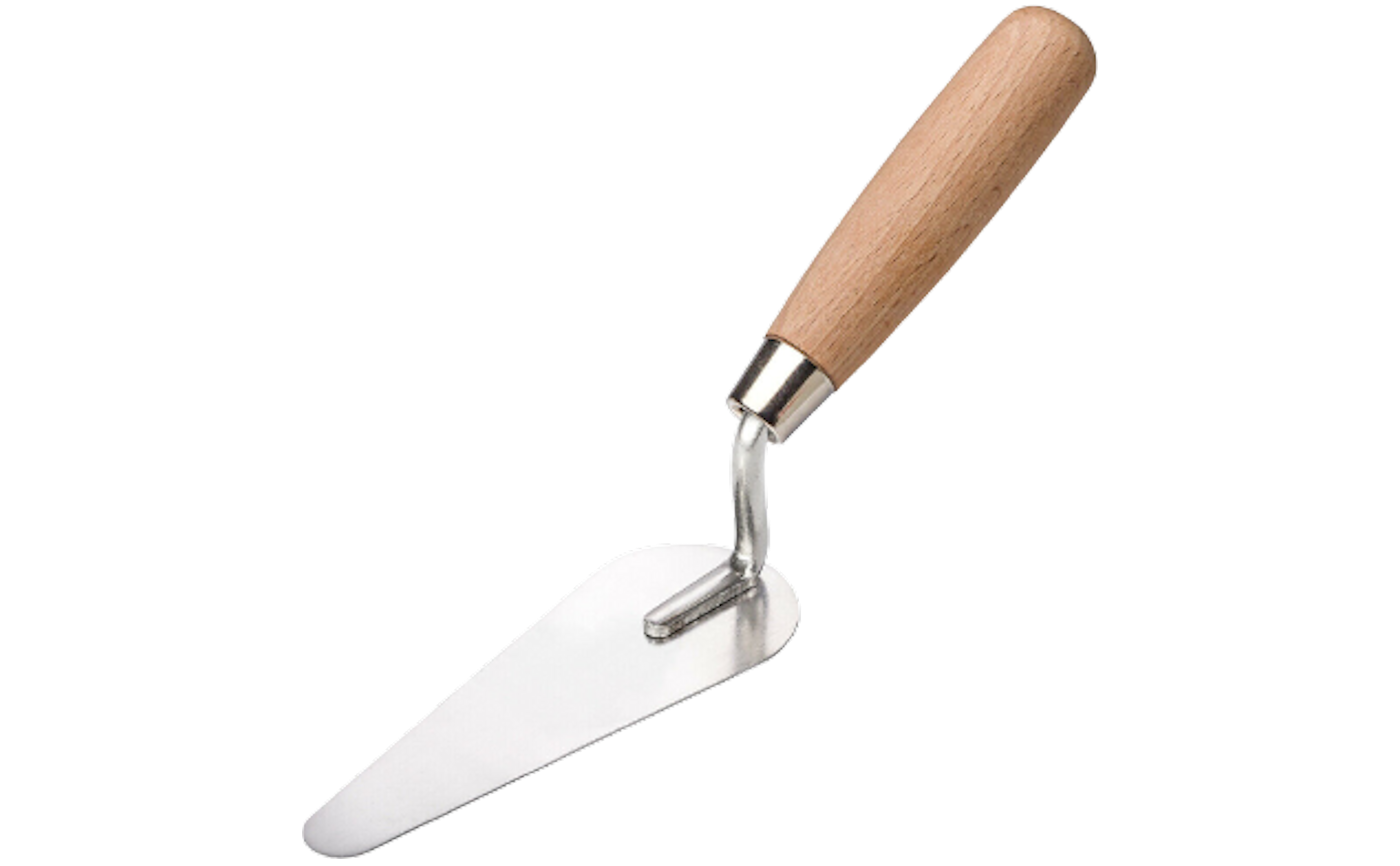 Die gerundete Form der Katzenzungen Kelle erlaubt das feine Arbeiten mit Stempelbeton. Am besten kommt sie beim Strukturieren und Schnitzen von Stempelbeton zum Einsatz.