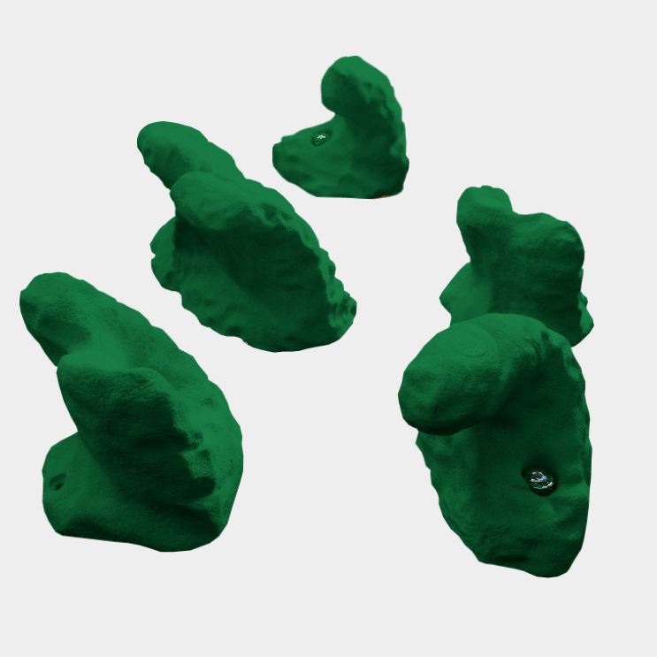 Diese großen und massivsten Henkel / Dach Klettergriffe ermöglichen ein sehr gutes Greifen. Eingesetzt werden die Griffe in Boulderanlagen und Kletteranlagen in öffentlichen Einrichtungen oder privaten Kletteranlagen. Das Set besteht aus 5 verschieden ergonomisch geformte, komfortable Griffe. Sie sind gedacht für überhängende Wände oder für sehr leichte senkrechte Kletterrouten.