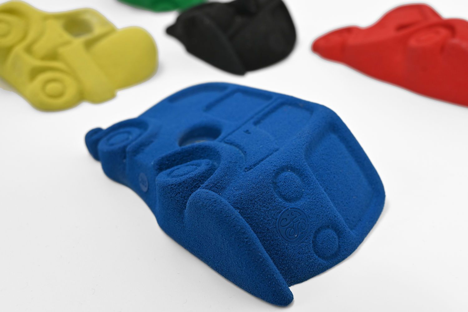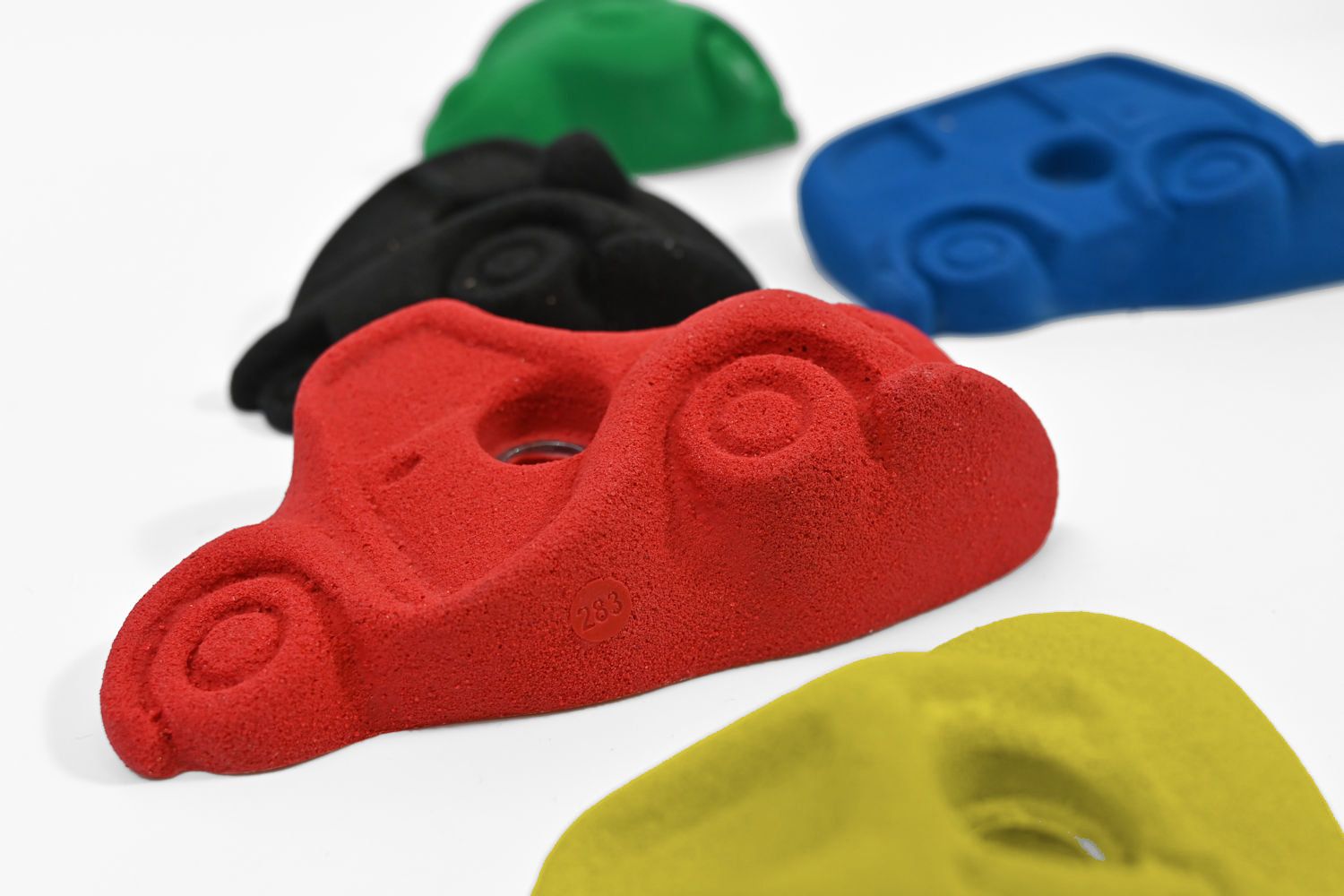 Dieses 5-teilige Set besteht aus bunten Kinderklettergriffen in Autoform. Die Klettergriffe sind maßgeschneidert auf die besonderen ergonomischen Anforderungen von Kinderhänden. Außerdem sind sie lebensmittelunbedenklich und speichelfest (gemäß Lebensmittel- und Bedarfsgegenständegesetzes §5Abs.1.Nr.1). Dies ist vor allem für Kinder wichtig, da diese eng mit den Klettergriffen in Kontakt kommen.